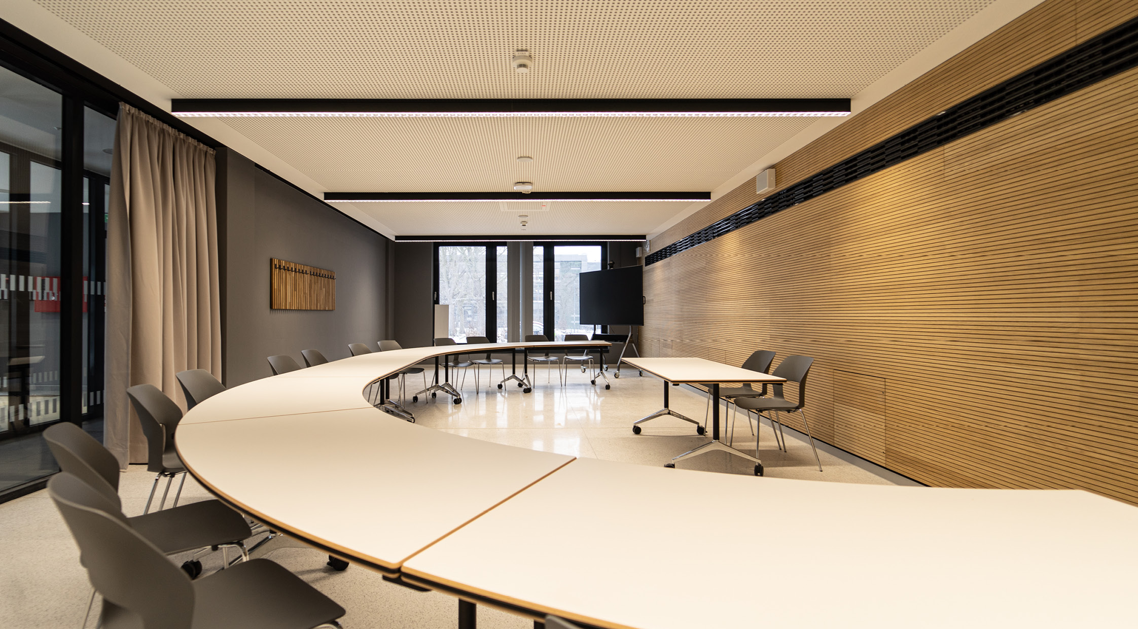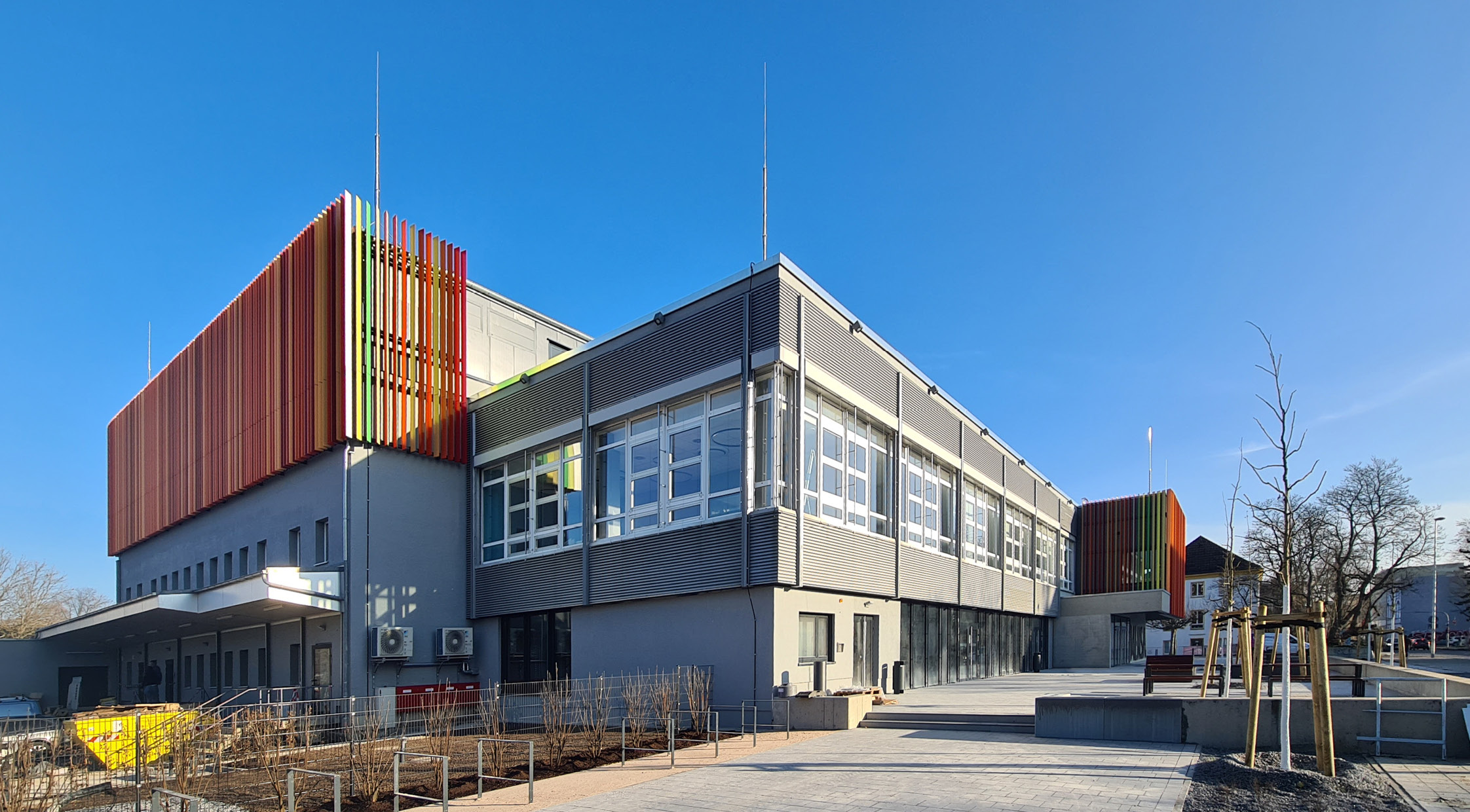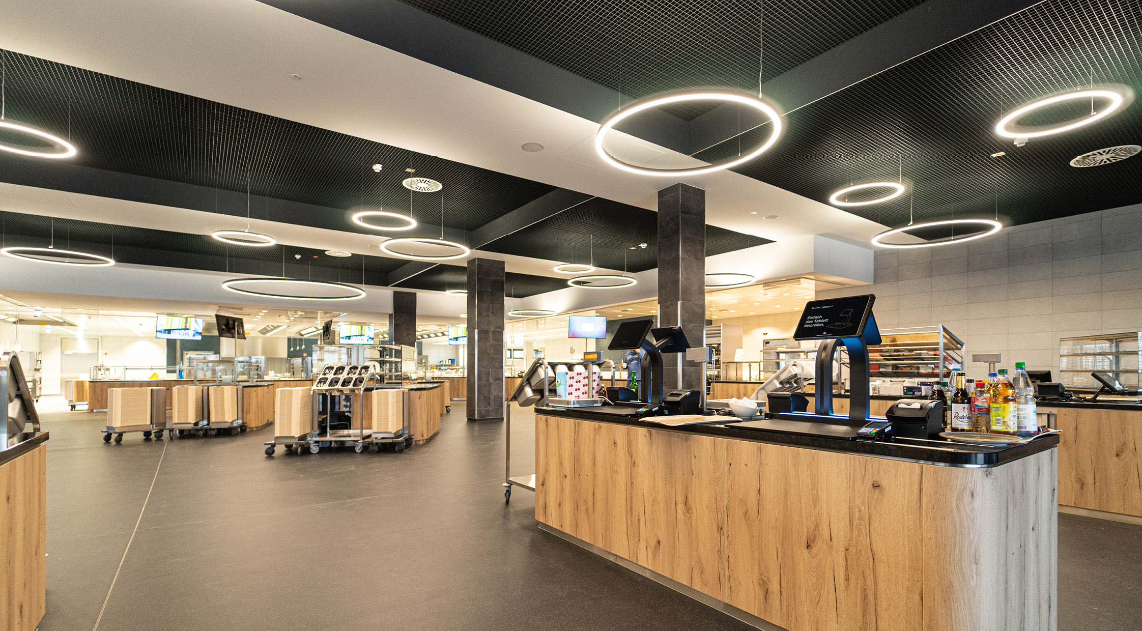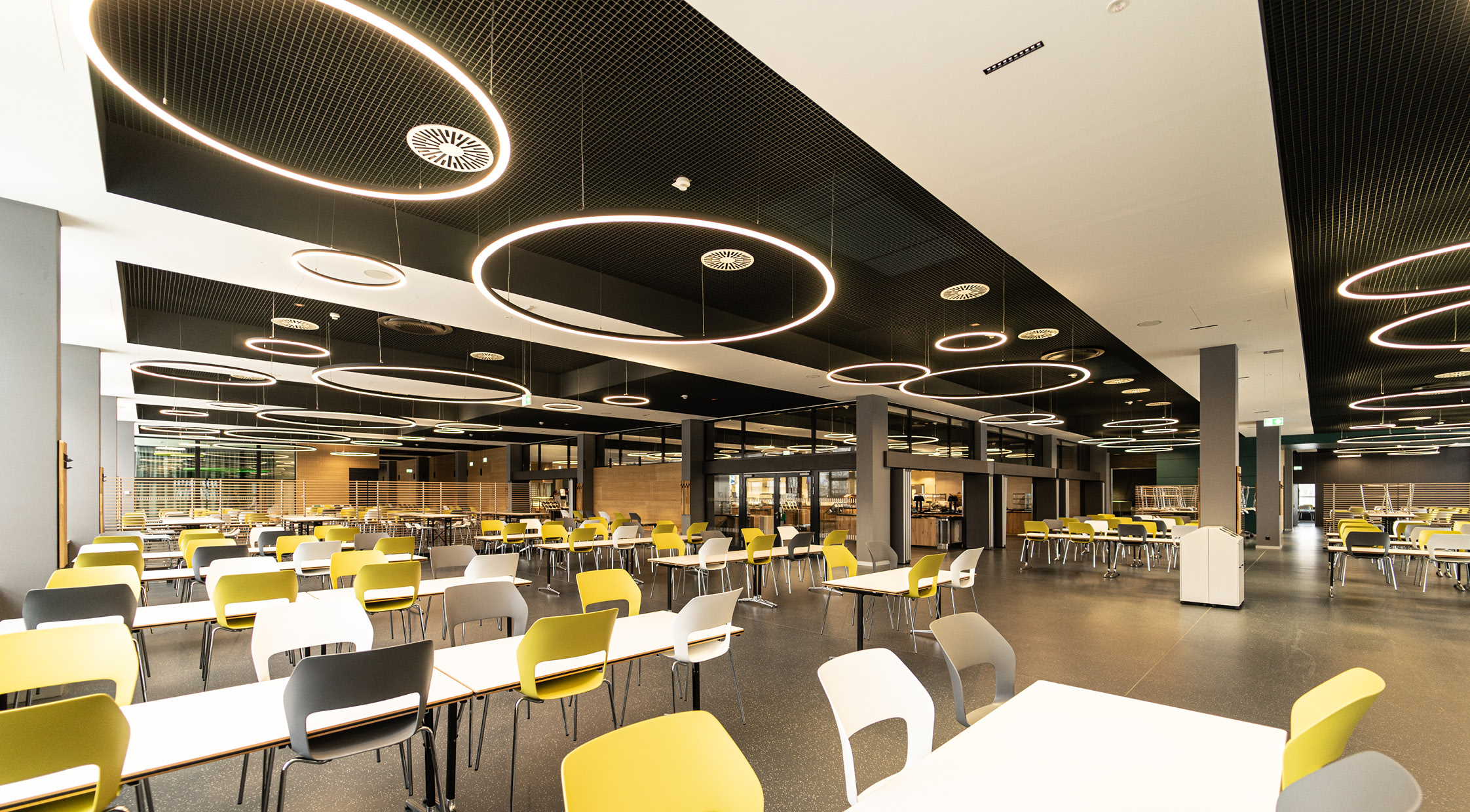 Die Mensa am Standort Zentralcampus BTU Cottbus-Senftenberg erfährt zusammen mit den Freianlagen eine umfassende Umgestaltung. Zum Forum und zur Universitätsstraße entstehen zwei markante neue Zugangsbereiche. Der Speiseraum wird durch einen dem Forum zugewandten Balkonanbau ergänzt und so das Platzangebot in den Freiraum erweitert. Vormals aufgegliederte Gastronomiefunktionen werden zentralisiert und doppelte Funktionen abgebaut. So entsteht eine großzügige Cafeteria im Erdgeschoss und ein Speisesaal für die Mensa im Obergeschoss. Durch das Konzept der offenen Küche wird neben dem Speisen nun auch das Kochen erlebbar gestaltet. Die BTU erhält an der Universitätsstraße einen neu konzipierten Bereich mit Co-Working Möglichkeiten einer Campus-Lounge und Räumlichkeiten für den Campus-Store und das Career-Center. Um den heutigen Anforderungen an Hygiene, Raumklima und Energieeffizienz gerecht zu werden sind umfangreichen Technischen Anlagen erforderlich. Für diese entsteht auf der ehemaligen Dachfläche ein neues Technikgeschoss. Die neuen Gebäudeteile werden mit einer mehrfarbigen Lamellenfassade hervorgehoben und die Dachfläche mit Photovoltaik ausgestattet.